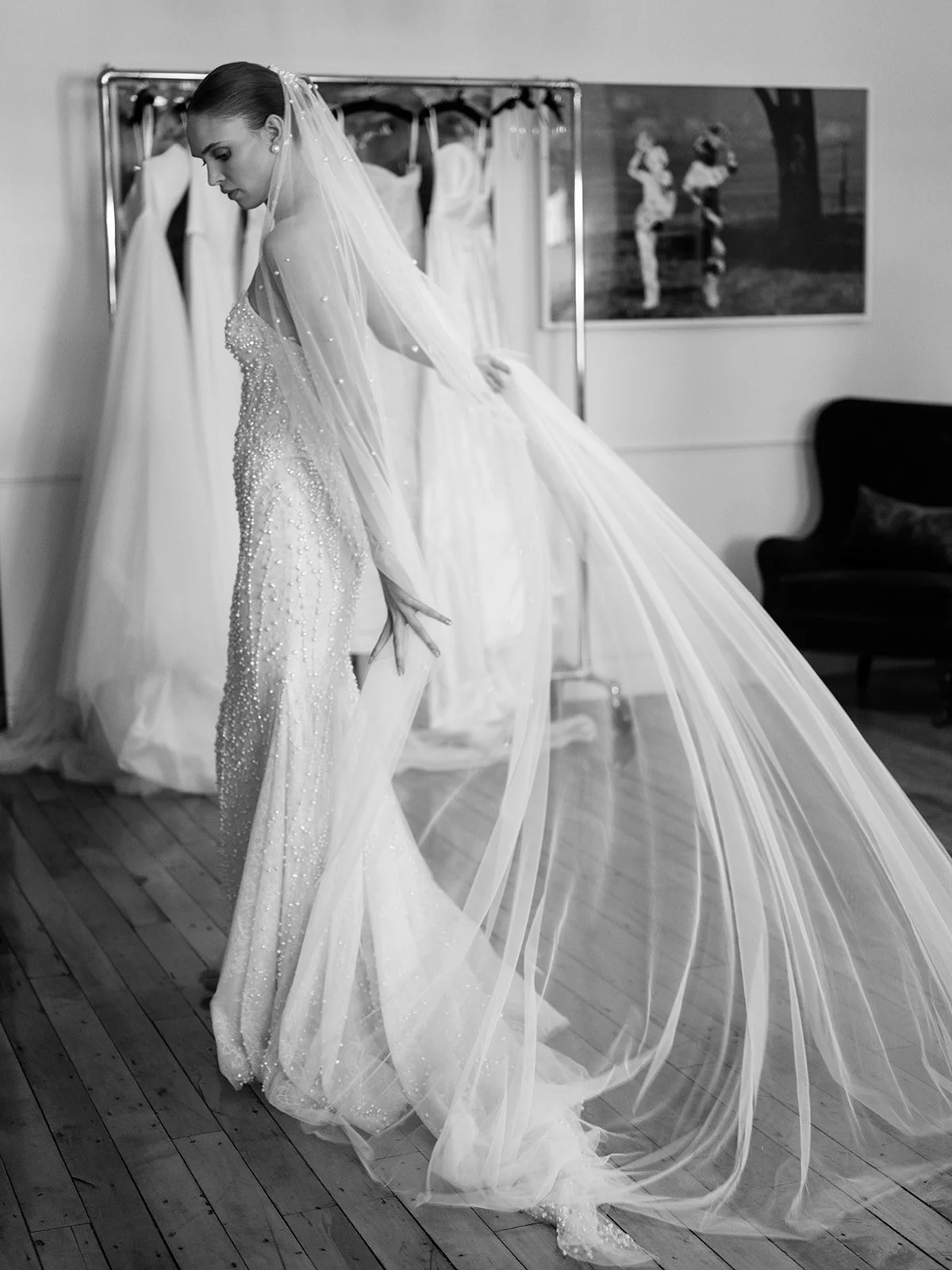 Bridal buyers pick and choose what they would like represented at their boutique. We attend runway shows and private buying appointment to hand select which pieces we would like to have in our bridal shop. Let’s use Ines Di Santo for the example. Ines Di Santo makes three bridal collections: Jewel Box, Couture, and Ines by Ines. The Jewel Box line is mainly for celebrity, red-carpet, and editorial. For The Bridal Finery, we will purchase 1-2 dresses from the Jewel Box collection to have more extravagant, specialty dresses for our boutique. Those dresses tend to range from $12,000 - $20,000. We try to keep an average price point of $8,000 in our boutique so we don’t buying a ton of options from Jewel Box. On the other hand, The Couture line we buy the most from. Those dresses are made in Toronto with Ines Di Santo overseeing production. We have the ability to make custom changes like raise the neckline, make strapless, add sleeves, etc… Those custom changes allow us to create something unique for our bride. Then, there is the Ines by Ines line where the dresses are made all over the world and some changes are possible, but more limited. Those start at around $3,500 and up. So when we go into the buying process we are considered the best quality, custom change options, and price point for our brides.