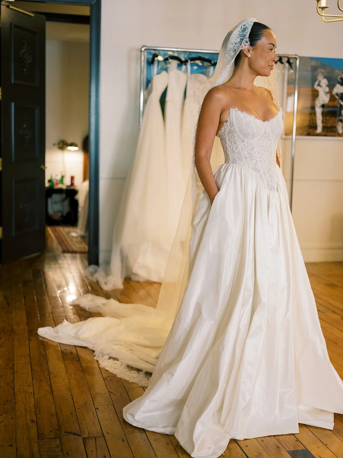 Throughout the duration of your bridal appointment, your stylist stands as a knowledgeable presence, prepared to address your questions, show you modification possibilities, and provide expert guidance on accessory styling.